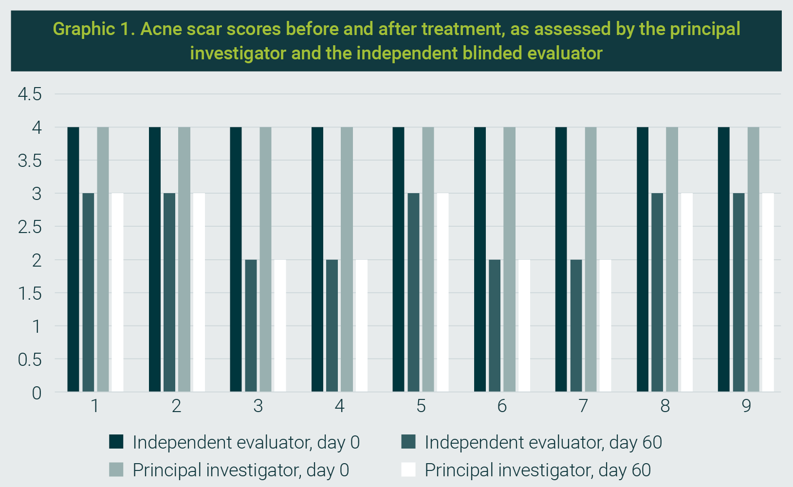 This was a retrospective, multicenter pilot study involving nine volunteer patients with post-acne scars graded ≥2 according to the Goodman and Baron qualitative global acne scar grading system (Table 1).