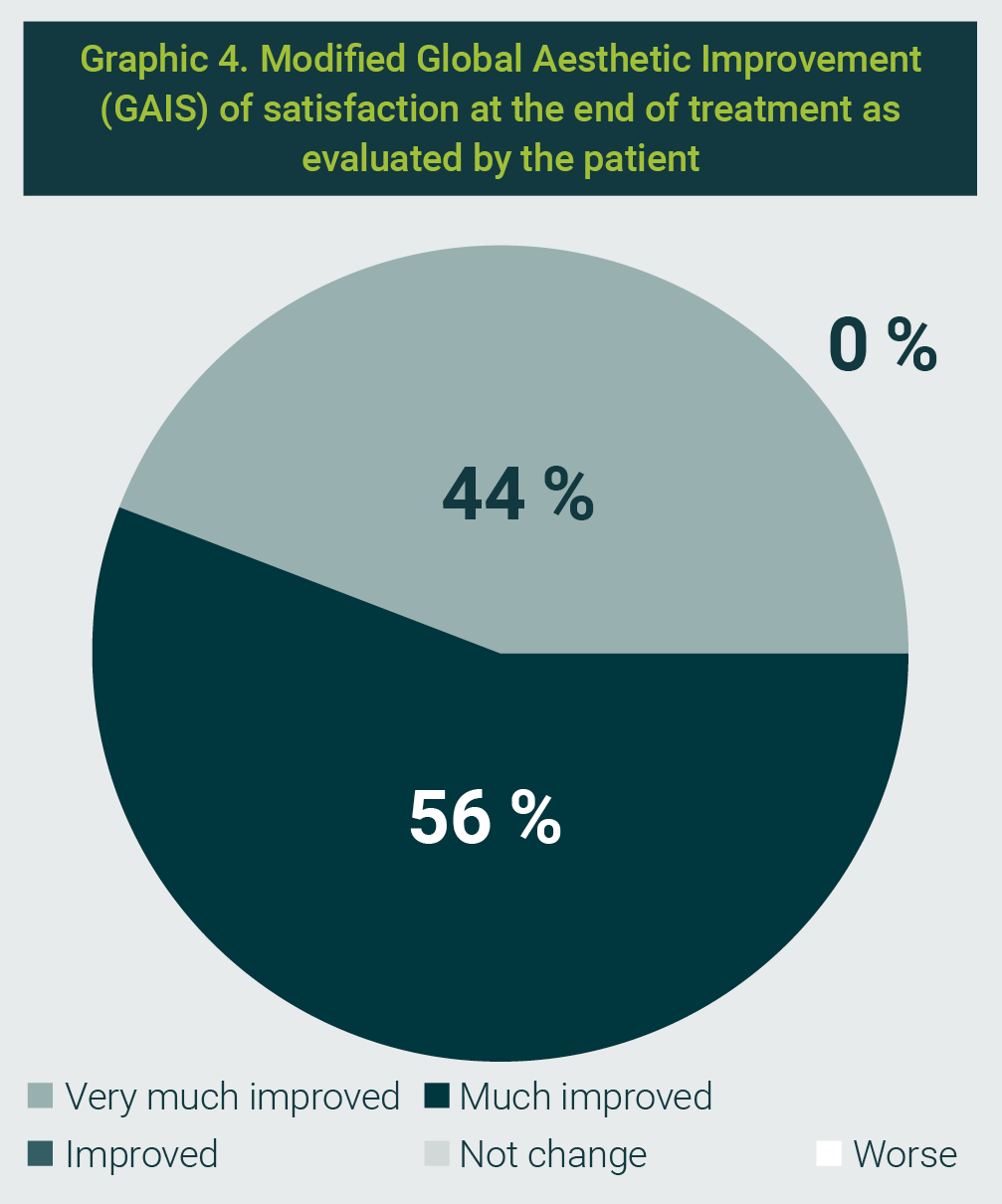 All patients entered the study with a Goodman and Baron score of 4 and completed it with an average score of 2.25, as evaluated by the principal investigator (Graphic 1).