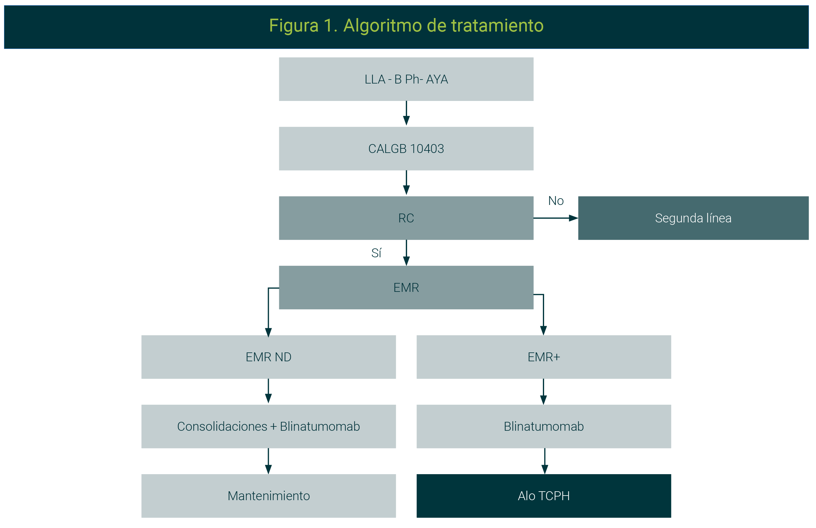 Para los pacientes con LLA Ph+, el mantenimiento postrasplante con inhibidores de tirosincinasa se considera el estándar.61 Para pacientes con LLA y EMR positiva postrasplante, el uso de terapias anticipadas con QT, infusión de linfocitos del donante han mostrado resultados prometedores. Para los pacientes en recaída postrasplante, una segunda terapia celular es el tratamiento que ofrece mayores probabilidades de supervivencia a largo plazo.