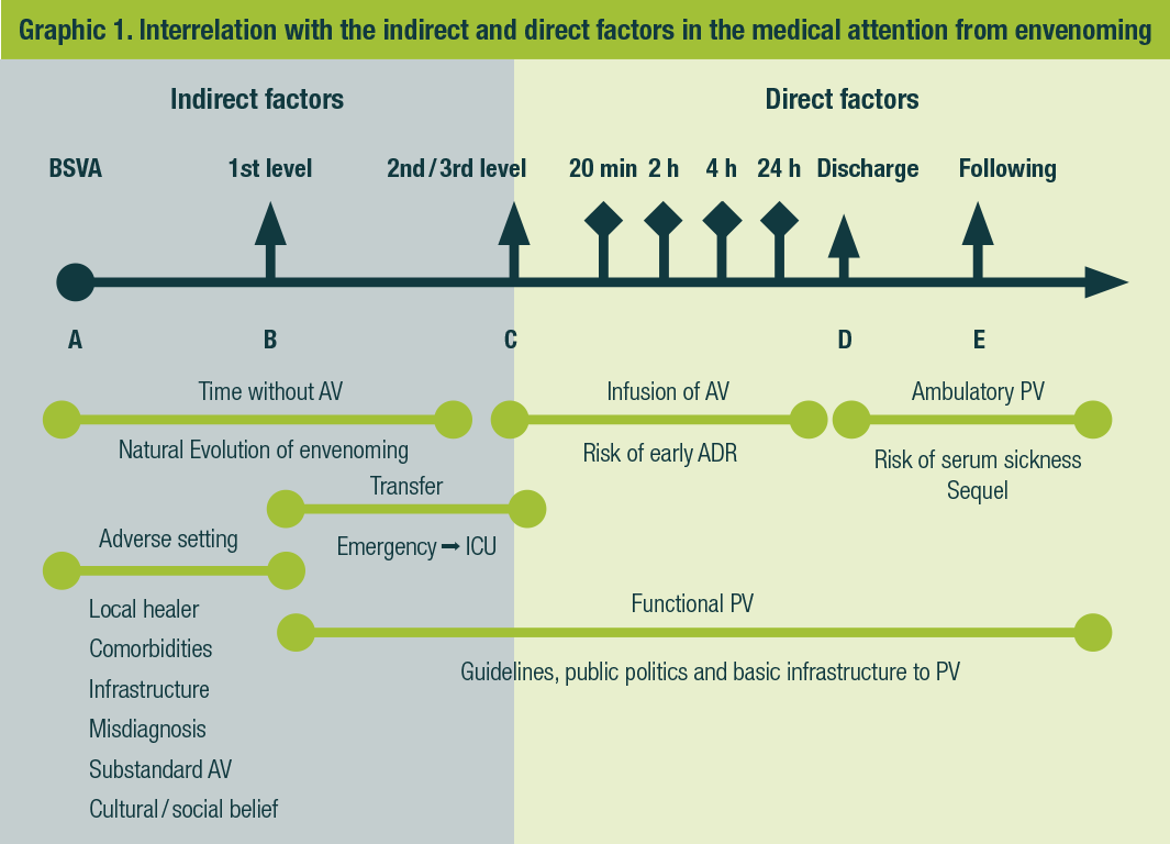 The aim of this paper is outlining an overview about the clinical setting of envenoming, the current treatment and its relationship with the PV as a complementary activity to improve the quality, effectiveness, safety of AVs, through a perspective of experts in Mexico.