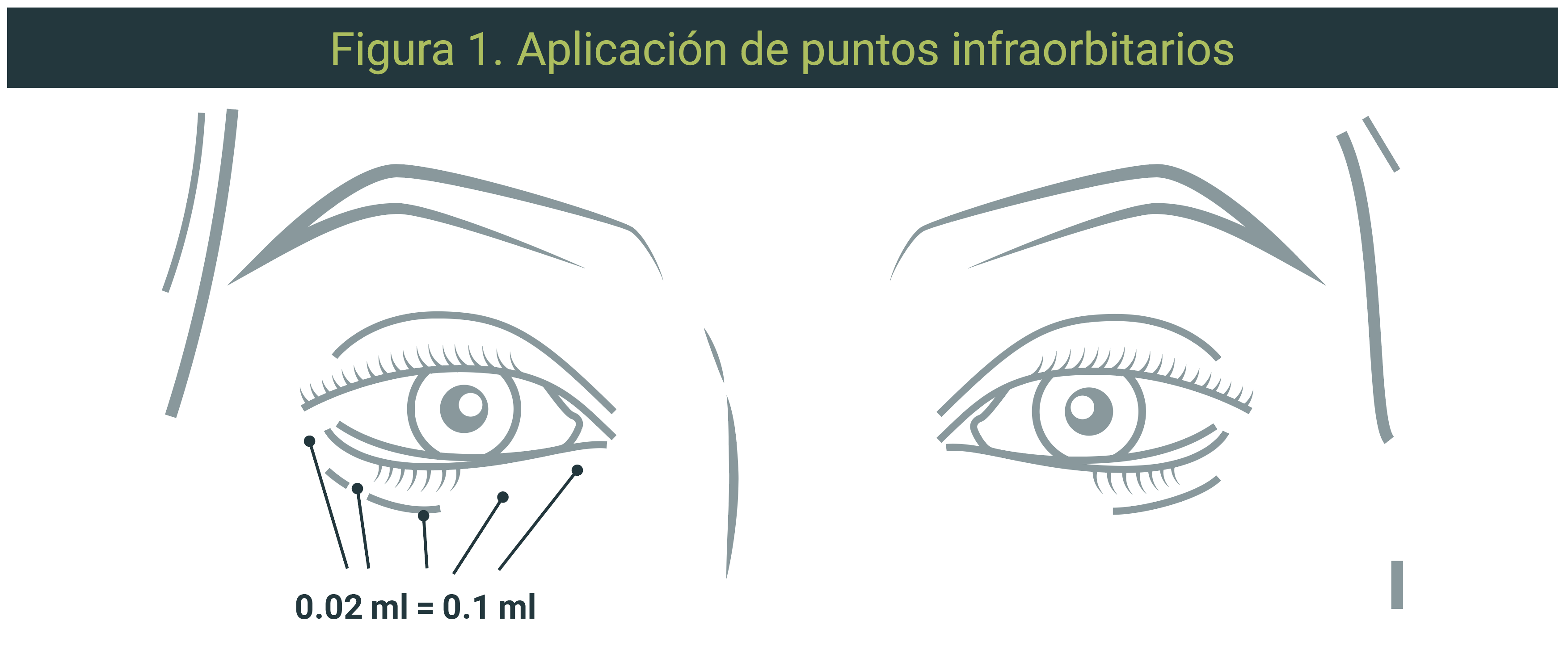 La región infraorbitaria es primordial por ser evidente y mostrar signos claros de envejecimiento en forma de pigmentación, laxitud cutánea y rítides finas.