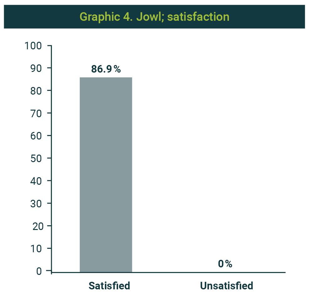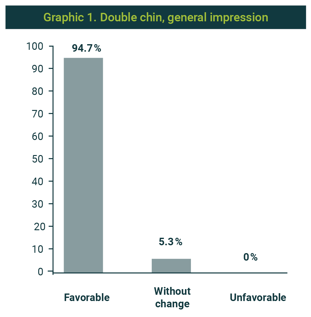 As a motive for consultation, patients must manage double chin, jowl or mandible fat, flabbiness, and located fat. Every patient signed a rights cession and acceptance letter for the use of their pictures for academic purposes. Data was captured ad hoc and underwent a descriptive statistical analysis.