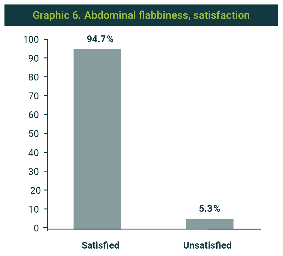 The result was favorable in 18 patients (94.7%), and only one reported without change (Graphic 5). Likewise, satisfaction was reported in 18 cases (94.7%) (Graphic 6).