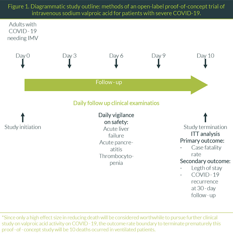 A useful drug must be effective to treat COVID -19 and its consequences. Given that it is expected the duration of this pandemic is long25, it can be supposed that we will have several ways to treat this disease to improve clinical outcomes of crucial importance to eventually stop the direct sanitary implications and the very high economic burden that the COVID-19 pandemic has caused. Although long-term adverse effects and even pro-inflammatory consequences have been reported with the chronic use of VPA, given the urgent need for a drug active against COVID-19 to shorten the high mortality and LOS, the study of VPA is justified from a scientific standpoint.